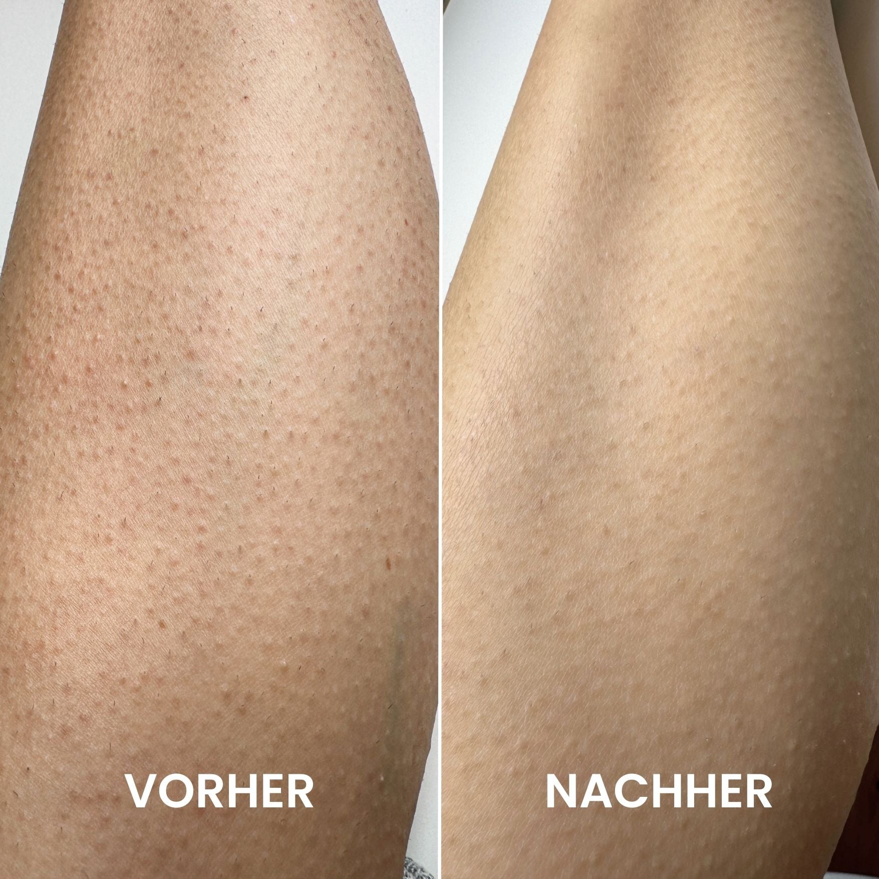 ✅ reduziert Reibeisenhaut, Erdbeerbeine und eingewachsene Haare